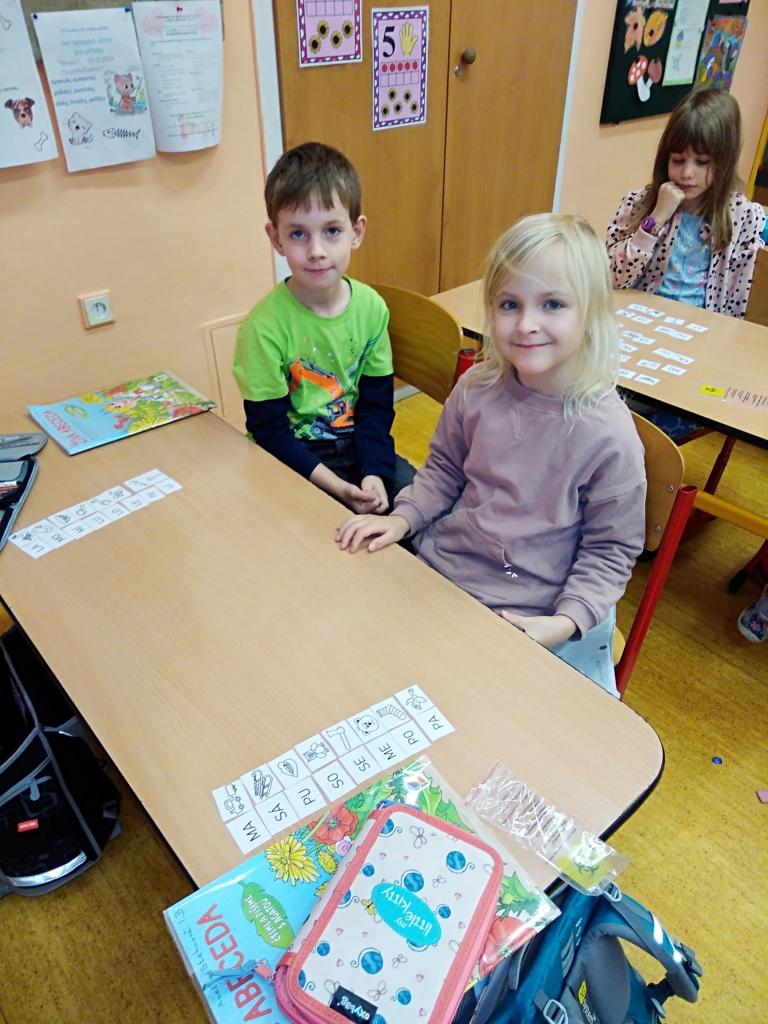 Jak vypadá jeden běžný den v I. B? Děti již čtou první jednoduchá slova, pracují ve dvojici nebo ve skupině a v hodině výtvarné výchovy malují obrázky, tentokrát postavu čerta.