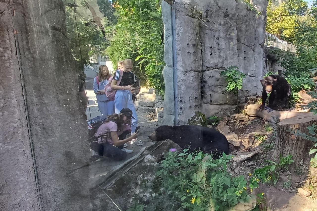 VII.B dnes v ZOO Jihlava s výukovým programem "Život savců". Viděli jsme žirafy, zebry, hrošíka, lamy s mládětem. Giboni křičeli, že jsme ani neslyšeli výklad. Medvěd malajský pózoval za sklem, tygr a kočka divoká si pochutnávali na králíkovi, lemuři a surikaty dováděli na sluníčku. Počasí se vyda