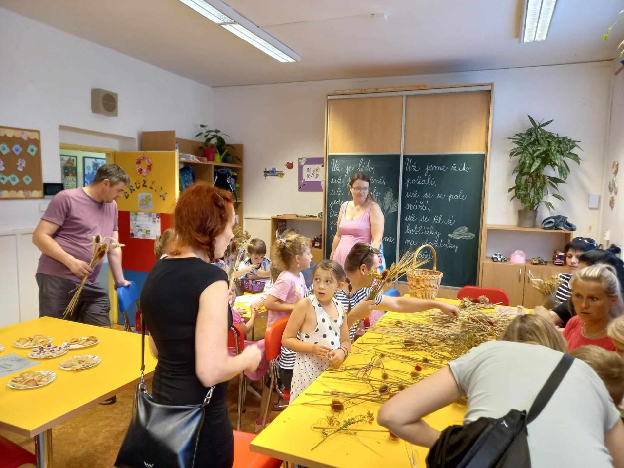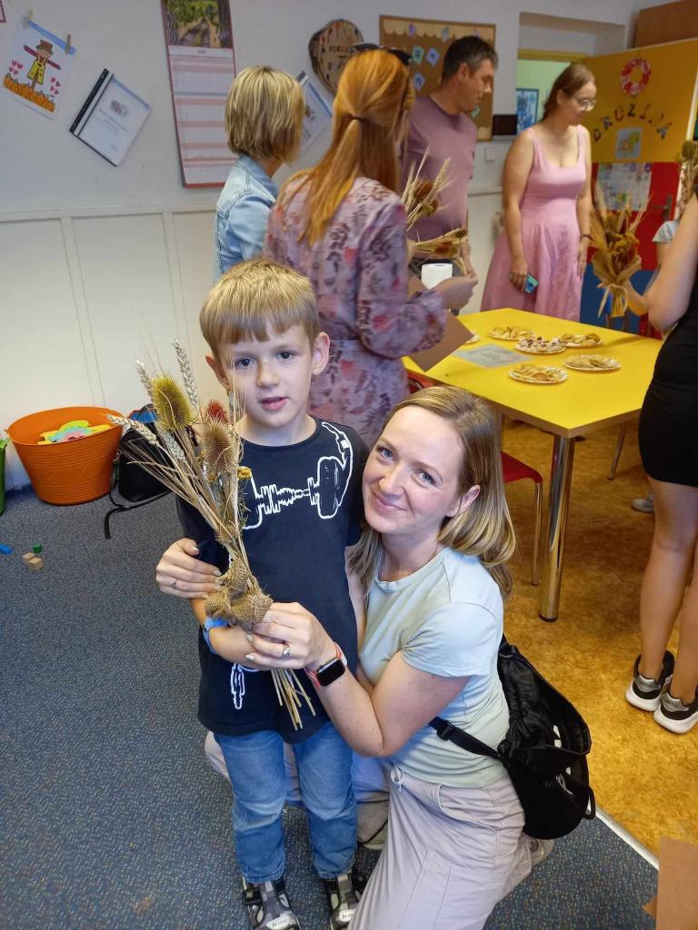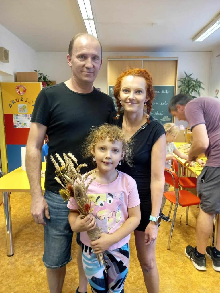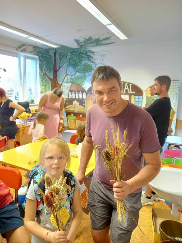 Krásný program na téma Dožínky připravila pro své žáčky a jejich rodiče paní vychovatelka Kristýna Hudcová. Maminky pomáhaly při květinovém aranžmá, tatínkové fandili při dožínkovém běhu a všichni si pochutnali na výborných podzimních pochutinách. Všem děkujeme za příjemně strávené odpoledne a budem