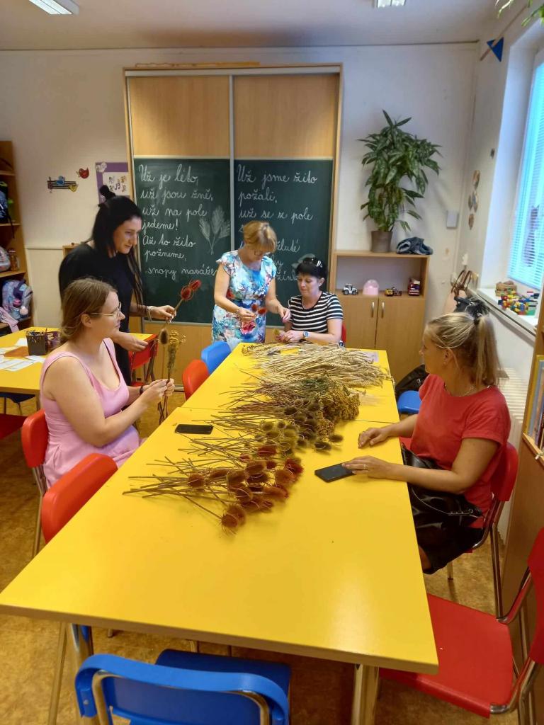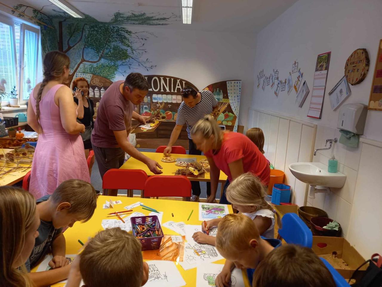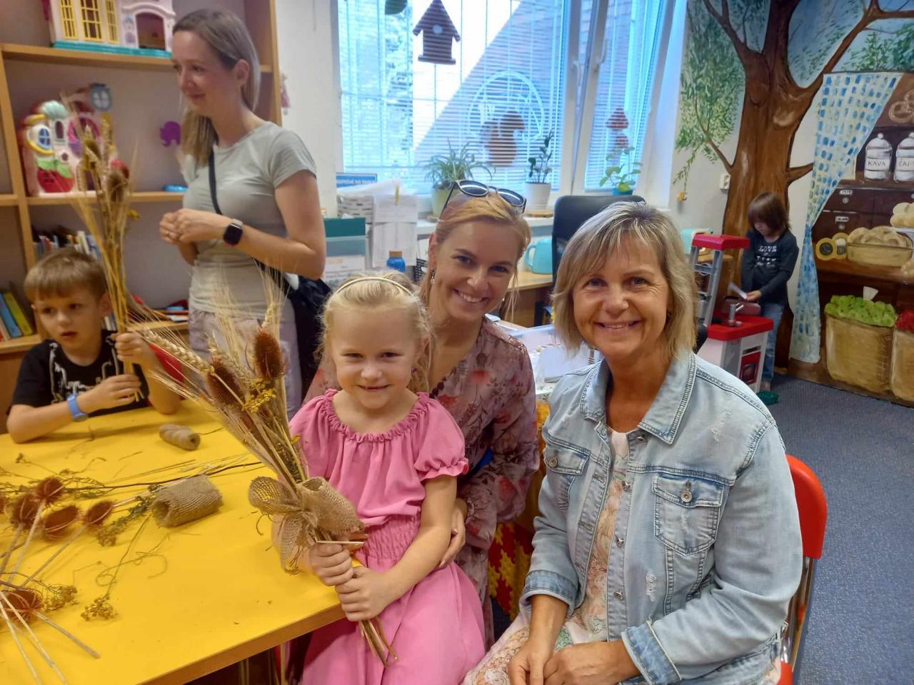 Krásný program na téma Dožínky připravila pro své žáčky a jejich rodiče paní vychovatelka Kristýna Hudcová. Maminky pomáhaly při květinovém aranžmá, tatínkové fandili při dožínkovém běhu a všichni si pochutnali na výborných podzimních pochutinách. Všem děkujeme za příjemně strávené odpoledne a budem