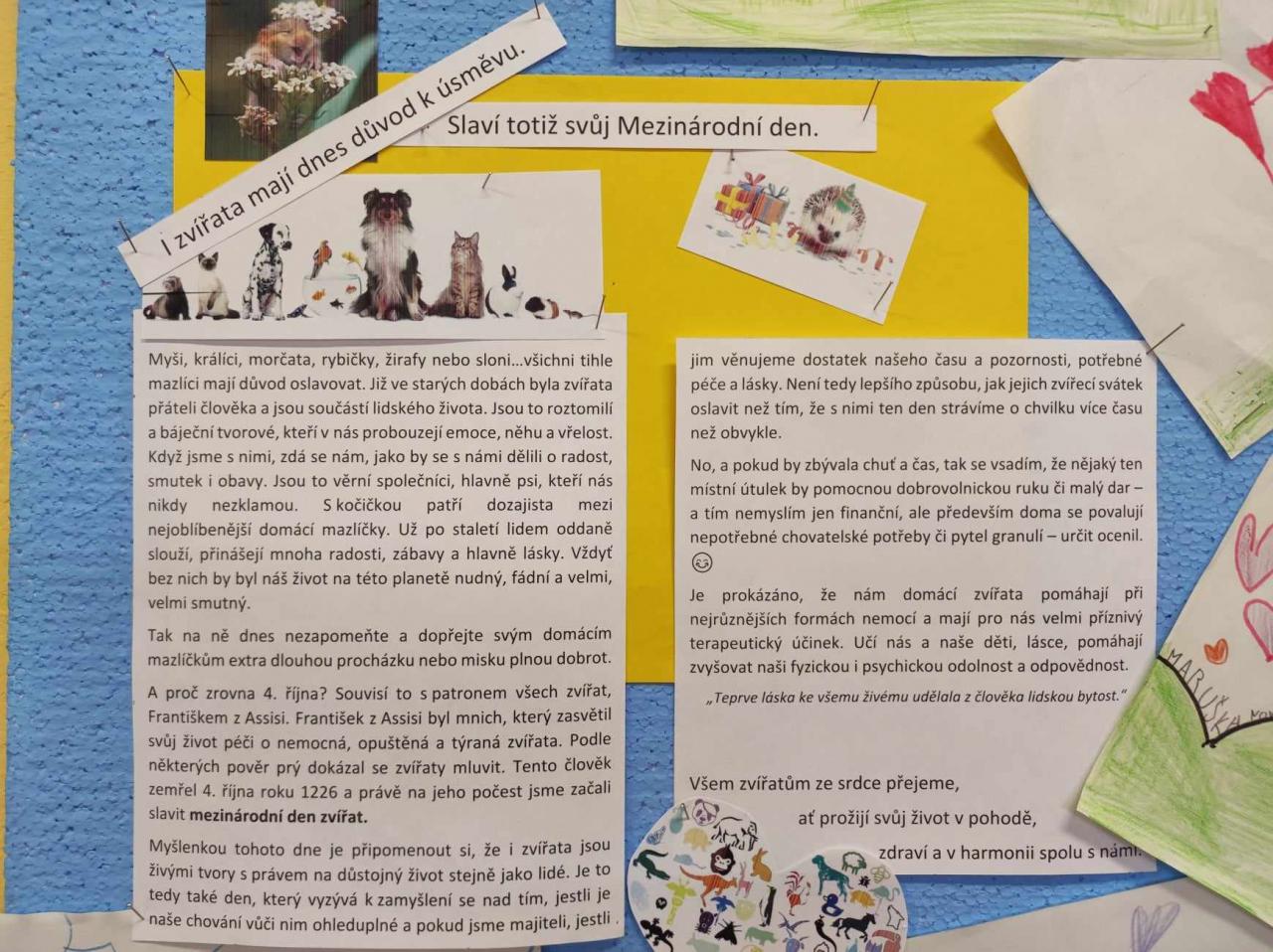 I zvířátka mají důvod k úsměvu, včera totiž oslavila svůj mezinárodní den a děti z VI. oddělení ho s paní vychovatelkou Hankou Čavrnochovou společně oslavily.