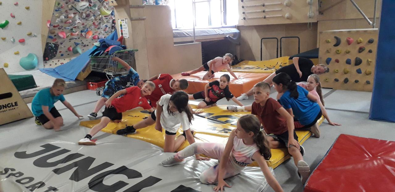 Na začátku nechybělo rozehřátí a protažení, následovala lezecká stěna a překonávání překážek - děti byly celou dobu v pohybu, vše hravě a bezpečně.