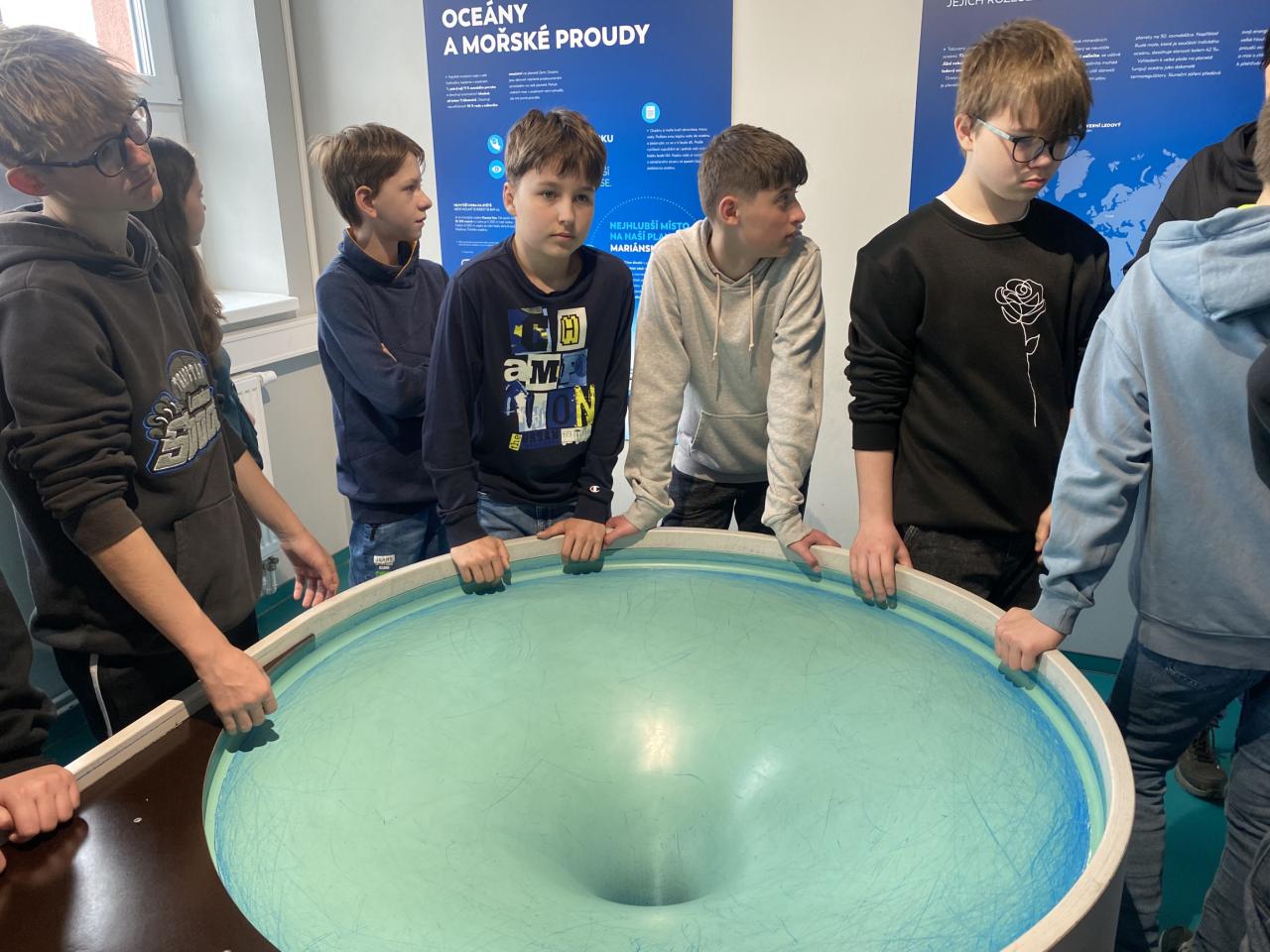 Žáci 7. ročníku se dnes zúčastnili exkurze do vzdělávacího centra Planeta Hlinsko. S lektory prošli tři interaktivní expozice - litosféru, hydrosféru a atmosféru. Dověděli se například, jak vzniká zemětřesení, tornádo nebo jak je to s koloběhem vody na naší planetě.